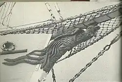 The boat was originally constructed entirely of native Japanese woods. (In 1956, the mainmast became infested with borer-type insects and was replaced in Auckland with one of native New Zealand kauri pine.) It was double-planked, mahogany over hinoki (cypress). The hull was hinoki above the water line, sugi (cryptomeria cedar) below. The cabins below decks consisted of mahogany, camphor, cherry, chestnut and Japanese cabinet woods.[2]