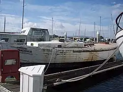 In March 2007, mention of the Phoenix, gutted and minus both masts and its hand-carved Phoenix figurehead, showed up in an ad on Craigslist which began, "FREE: 50-foot yacht. . ." John Gardner of Lodi, California, then 31, took possession of the Phoenix and had it towed up the Sacramento River, hoping to restore it and use it to rehabilitate young people recovering from substance abuse. During the journey, the yacht collided with a dock and had to be kept afloat with the help of a battery-powered bilge pump.[22] In August 2010 the Phoenix went down off Tyler Island despite Gardner's efforts to keep it from sinking.[23] In September 2010 Dr. Naomi Reynolds, granddaughter of the original Dr. Reynolds, took possession of the yacht, resting in 25 feet of water in the Mokelumne River.[24] A diver inspected the vessel and found no serious damage.[25] Peace activists are currently restoring the Golden Rule (2013) and plan to resume peace activities in it. They hope to raise funds to raise and restore Phoenix of Hiroshima next.[26][27]