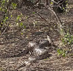 Reptile species found in the park are the keel back tortoise, viper, krait, cobra, water cobra, banded krait (Bungarus fasciatus), Asian rat snake (beauty rat snake), Russels’ viper (Daboia), checkered garter snake, python and common lizard (viviparous lizard). Python molurus is an endangered species found in the park.[20][21][22]