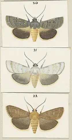 3. ^ Edward Meyrick (1887). "Monograph of New Zealand Noctuina". Transactions and Proceedings of the New Zealand Institute. 19: 5–6. ISSN 1176-6158. Wikidata Q104048034.