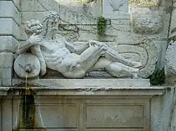 In the square there are three of the four so-called "talking statues" of Brescia,[note 5] a group of sculptures from different periods on which the Brescians used to post anonymous messages criticizing the rulers. In particular, under the portico of the Palazzo della Loggia, there is the Lodoìga, a sculpture dating from the second half of the 16th century. This statue, placed in direct contact with the square, was considered by the citizens of Brescia as a "spokesman" for the grievances of the people, who expressed their criticism through notes and sheets anonymously pasted on the statue or on the wall adjacent to it. Counterbalancing the Lodoiga were the two macc dèle ure ("the madmen of the hours"), called Tone and Batista, placed at the top of the Clock Tower. Because of their location, towering over the square, they were considered to be the patrons of the city government, in open contrast to the Lodoiga.[55]