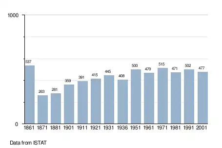 - ^ All demographics and other statistics: Italian statistical institute Istat.