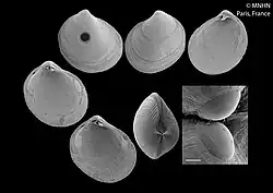 | Shell of Pillucina pacifica (specimen at MNHN, Paris) | |