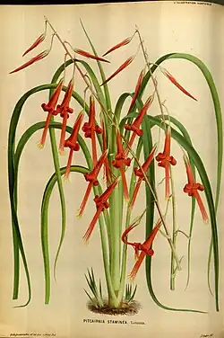 Pitcairnia staminea is a species of bromeliad in the genus Pitcairnia. This species is endemic to Brazil.
