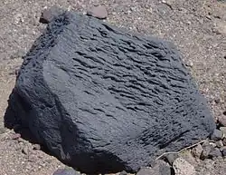 Ventifact Ridge is a part of a basaltic lava flow. The rocks on its exposed and barren ridge are famous for being shaped by wind erosion and are called ventifacts. Sharp edges of ventifacts called Kanters are formed when two or more facets (planar surfaces) intersect. Open grooves in the ventifacts are called flutes. Most of the holes in the basalt are vesicles that were formed when gas escaped from the cooling lava. Some of these have been expanded or even merged by sandblasting.