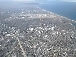 Los Angeles International Airport and surrounding areas, July 2021. Playa Vista is in the center of the photo just above where the freeways cross.