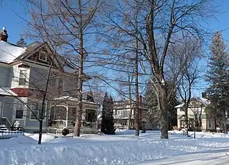 The earliest large, stylish houses in Marshfield were built starting in 1880 by the officers of the Upham Company, west of Central near their sawmill in what is now the Upham House Historic District.[4] Not long after, other businessmen and professionals began building large, stylish houses a few blocks east of Central on what was probably already called Pleasant Hill. It wasn't much of a hill, but it was higher than Central Avenue,[2] and it must have seemed pleasant compared to the dirt and noise on Central.