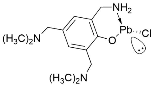 In reactions with azides, the precise nature of adducts depends on the moieties near the lead(II) center. A nearby phosphorus atom also acts as a Lewis base, and in the known instance forms a bridging ring;[25] absent such an atom, the azide evolves N2 to form a nitrene, which then inserts into a C-H bond of an arene substituent and coordinates to Pb as an amine base.[24]