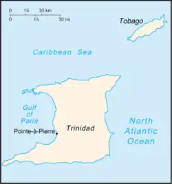 Pointe-à-Pierre (/ˌpɔɪntəˈpɪər/ POYNT-ə-PEER) is a town in Trinidad and Tobago. It lies north of San Fernando and south of Claxton Bay. It is most famous as the site of the country's largest (and now, only) oil refinery which used to be run by Petrotrin, the state-owned oil company.