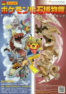 The Pokémon Fossil Museum (Japanese: ポケモン化石博物館, Hepburn: Pokemon kaseki hakubutsukan) is a travelling exhibition based on the Pokémon media franchise, displaying illustrations and "life-size" sculpted renditions of the skeletons of fossil Pokémon, along with the actual fossils of the real-life prehistoric animals and other organisms on which they were based.[1][2][3] The exhibit was created by the National Museum of Nature and Science and The Pokémon Company.