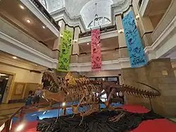 The exhibition first opened at the Mikasa City Museum in Mikasa, Hokkaido, on 4 July 2021, and remained there until 20 September.[1][4] It then moved to the Shimane Nature Museum of Mt. Sanbe in Ōda, Shimane, from 9 October 2021 to 30 January 2022,[14] before travelling to the Toyohashi Museum of Natural History in Toyohashi, where it opened on 16 July 2022.[8] Due to rain, the opening ceremony was held inside the building, and featured a ribbon cutting attended by Toyohashi mayor Koichi Sahara, representative students from Futagawa Elementary School, and a costumed mascot of excavator Pikachu.[8] Additionally, four Pokéfuta (manhole covers decorated with drawings of Pokémon) were unveiled, with intentions to place them around the city.[8]