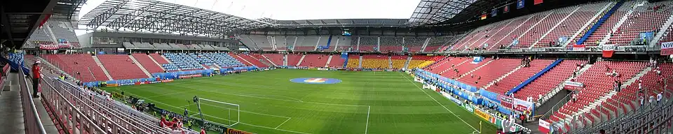 In the match against Germany, Maciej Żurawski sustained a quadriceps injury, sidelining him for the rest of the tournament. However, he stayed with the team, explaining that he was the captain of the national team.[50][51] As a result, experienced player Jacek Bąk was appointed the new captain.[52] In the second group match, played at Ernst-Happel-Stadion in Vienna, Poland faced the tournament hosts – Austria. Mariusz Lewandowski, who had twisted his ankle and bruised his shin against Germany, started from the first minute.[53] The match began with quick and decisive attacks from the Austrians. Artur Boruc performed well, preventing Poland from conceding a goal – saving a difficult shot from Andreas Ivanschitz in the 10th minute, followed by two strikes from Martin Harnik. Later, he saved a one-on-one situation against Christoph Leitgeb and stopped a shot from György Garics in the 20th minute. He flawlessly caught crosses and skillfully restarted the game, initiating counterattacks.[54]