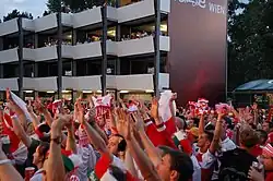 The Poland national football team arrived in Austria on June 2, landing at Graz Airport and traveling to Bad Waltersdorf. In Austria, they moved around in a distinctive bus decorated in national colors with the slogan: Because sport and fun matter.[41] The slogans for each team were chosen by fans who voted on the UEFA website.[42] The entire national team's staff was provided with special cars from the championship sponsor and security for the players. The first training session started on Tuesday, June 3, with 13 players and 3 goalkeepers participating. The training focused on sprints with dribbling elements, pressing play, and quickly transitioning actions to the other side.[43] On June 11, the team moved to Vienna for two days to play a match against Austria.[44]