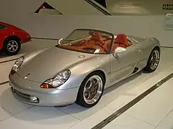Grant Larson's design, inspired by the 356 Cabriolet, Speedster, and 550 Spyder, stimulated a commercial turnaround for Porsche. Through consultation with Toyota, Porsche began widely sharing parts among models and slashed costs.[10]