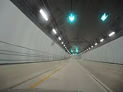 The Port of Miami Tunnel (also State Road 887) is a 4,200-foot (1,300 m)[3] bored, undersea tunnel in Miami, Florida. It consists of two parallel tunnels (one in each direction) that travel beneath Biscayne Bay, connecting the MacArthur Causeway on Watson Island with PortMiami on Dodge Island. It was built in a public–private partnership between three government entities—the Florida Department of Transportation, Miami-Dade County, and the City of Miami—and the private entity MAT Concessionaire LLC, which was in charge of designing, building, and financing the project and holds a 30-year concession to operate the tunnel.[4][5][6]