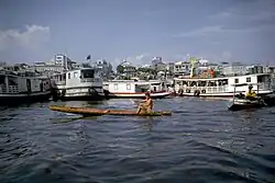 The Port of Manaus is a riverport located on the Rio Negro in Manaus, Amazonas, Brazil. The Port of Manaus is an important commercial center for ocean-going vessels traveling the Amazon. In fact, it is the main transport hub for the entire upper Amazon basin. It imports beef from the hinterlands and exports hides and leather. Important industries in the Port of Manaus include manufacturing of soap, chemicals, electronics equipment as well as shipbuilding, brewing, and petroleum refining.
