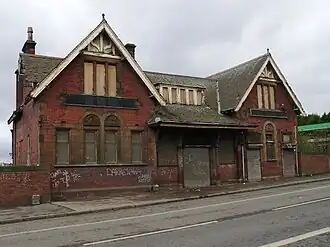 There was a goods yard at the site of the station, which was closed as part of the Beeching Axe. A scrapyard now occupies the site, although the station building and goods shed are still standing. The building has a slightly similar design to the now extinct Botanic Gardens structure on the Glasgow Central Railway. It has the company monogram "CR" carved in the stone above the two windows on the building's left frontal facade. It was in use as a bookmakers for many years in the 80s and 90s but by 2006, it was empty and falling into disrepair. It is now protected as a category C(S) listed building.[2]