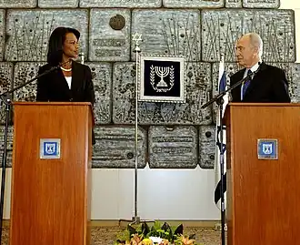 - ^ a b Jim Teeple, "Shimon Peres Sworn In as Israel's President" Archived 15 July 2007 at the Wayback Machine, VOA News, 15 July 2007.