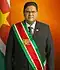The current president is Jennifer Geerlings-Simons, a former chairwoman of the National Assembly. She is affiliated with the National Democratic Party (NDP). Simons was elected on 6 July 2025 as president by acclamation,[3] and inaugurated on 16 July on the Onafhankelijkheidsplein in Paramaribo in a ceremony.[4]