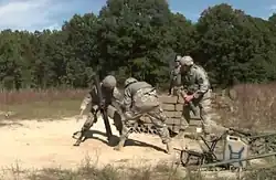 The Presidential Salute Battery (Guns Platoon),[1] an element of the 3rd United States Infantry Regiment, comprises soldiers qualified as MOS 11C (Mortarman).[2] This battery primarily handles firing ceremonial gun-salute honors at general officer funerals, retirements, state occasions, and provides indirect fire support for the regiment's tactical operations.[3]