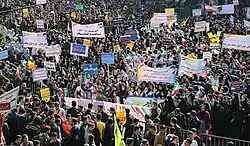 At the mentioned date, i.e. on 13 Aban,[5][6][7] at the demonstration which was also run by other groups of people (as well as pupils), the quarrel was commenced with tear gas, then by bullets. Eventually, 56 pupils—and a number of other presented people—were killed by the army of the Shah; likewise hundreds of them were injured.[8]