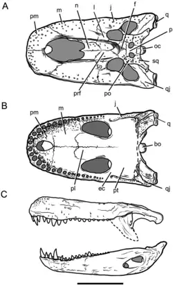 - ^ Rio, Jonathan P.; Mannion, Philip D. (September 6, 2021). "Phylogenetic analysis of a new morphological dataset elucidates the evolutionary history of Crocodylia and resolves the long-standing gharial problem". PeerJ. 9 e12094. doi:10.7717/peerj.12094. PMC 8428266. PMID 34567843.
