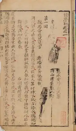 Qingmeng tuo (traditional Chinese: 情夢柝; simplified Chinese: 情梦柝; lit. 'The Love[rs] Dream Clapper') is a caizi jiaren Chinese novel of the early Qing dynasty.[1] It was written by Anyang Jiumin (安陽酒民),[2] a writer under a pseudonym, and was written in the late seventeenth-century and published in the early eighteenth-century.