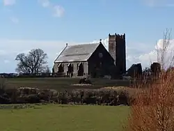 To this day, within easy view of the airfield, is the (still) stunted tower of the parish church of St. Andrew (in Manx Gaelic, Andrew translates to Andreas), a permanent legacy of Royal Air Force Andreas, and below which lie twenty-three military graves.[12][43]