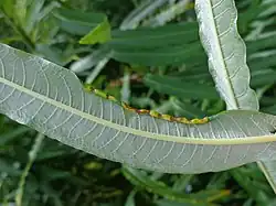 It is found on white willow (S. alba), goat willow (S. caprea), grey willow (S. cinerea), violet willow (S. daphnoides), olive willow (S. elaeagnos), purple willow (S. purpurea) and common osier (S. viminalis).[2] According to Redfern et al (2011) the gall is only found on S. viminalis in Great Britain.[3]