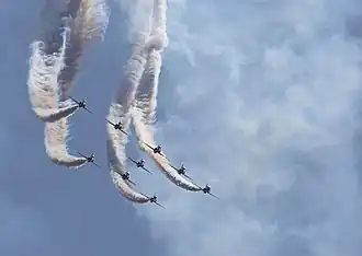 The Radom Air Show (Polish: Międzynarodowe Pokazy Lotnicze „Air Show Radom“, International air shows – Radom Air Show[1]) is a biannual celebration in the city of Radom, Poland, which began in 2000 (to continue in 2001, 2002, 2003 and then 2005). Every other year during the last weekend of August, military planes from the air forces of Europe and Russia gather in Radom for the show, which entertains visitors through elaborate stunts and performances from the aircraft. According to the authorities behind the show, its aim is to entertain the citizens of Radom and all of Poland, as well as to bring much needed investors to the city.