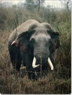 Raja Gaj (king elephant) (c. 1936 – 2007?) was a large Asian elephant that lived in the Bardiya National Park in Nepal. He is considered to be one of the biggest Asian bull elephants of modern times with an estimated height of 11 feet 3 inches (3.43 metres) tall at the shoulder, around two feet taller than the average Asian elephant.[1] He went missing from his habitat in southwestern Nepal, in December 2007 and was never seen again.[2] He was estimated to be 70 years old at the time of his disappearance.