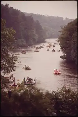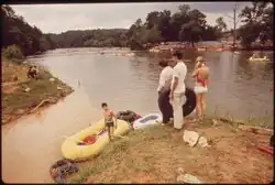 The Ramblin' Raft Race was an annual Memorial Day weekend raft race on the Chattahoochee River in Atlanta that lasted from 1969 to 1980. At its peak, more than 300,000 rafters partook in the race. After American Rafting Association stopped running the event and WQXI ran the event on their own in 1980, a drowning occurred. Because of the death, along with increasing liability insurance issues, the race was cancelled. The event was associated with consumption of alcohol and illegal drugs, both by the rafters and the thousands of spectators that lined a route that began at Morgan Falls Dam in Sandy Springs and ended at the shallow raft take-out a few hundred yards north of I-285 in Vinings.[1][2]