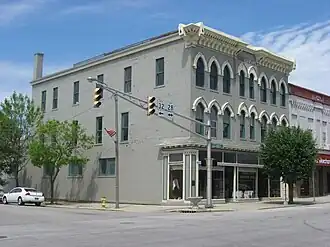 Raphael Kirshbaum Building, also known as the R. Kirshbaum Company, is a historic commercial building located at Union City, Randolph County, Indiana. It was built in 1876, and is a three-story, rectangular, Italianate style brick building. It features rounded arch openings with pressed tin hoodmolds and a metal cornice with a wide overhang supported by brackets.[2]: 2