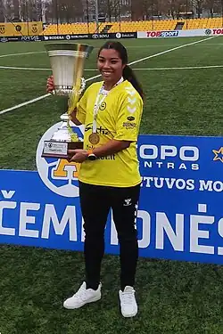 In July 2024 she moved to lithuanian FC Gintra.[12] where she competed in 2 Champions League Qualifying matches and several league games. She helped FC Gintra win the 2023/24 A Lyga Championship, marking their 20th championship in a row.