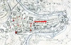 Starting in 1300, the street that would become Rathausgasse and Postgasse was known as Hormansgasse or Hormatsgasse. The Horman family, the origin of the name, lived in Bern from 1224 to 1326. Since 1619 the upper section (now Rathausgasse) was known as Metzgergasse (Butcher's Lane), while the lower section was first called Postgasse in 1798.[1] From 1880 until 1975 Rathausgasse was the name of just the northern section of Kreuzgasse. The upper section of what would become Rathausgasse 82 and 84 were known before the 19th century as Nägeligässli and in the 19th century as Statthaltergässli. Since 1898 those two houses became part of the Metzgergasse. Then, on 1 November 1971, Metzgergasse was renamed to Rathausgasse.[2]
