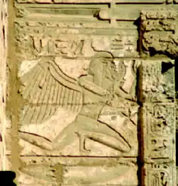 - ^ Sonderzeichen U 103 gemäß Petra Vomberg: Sonderzeichenliste In: Rainer Hannig: Großes Handwörterbuch Ägyptisch-Deutsch : (2800 - 950 v. Chr.). von Zabern, Mainz 2006, ISBN 3-8053-1771-9, S. 1448.
