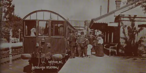 Resolven station circa summer 1905, with passengers boarding one of the then-new GWR steam railcars