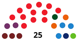 Siero Population: 51,662 ← Summary of the 26 May 2019 City Council of Siero election results → Parties and alliances Popular vote Seats Votes % ±pp Total +/− Spanish Socialist Workers' Party (PSOE) 10,097 39.81 +15.19 12 +5 People's Party (PP) 2,920 11.51 −0.99 3 ±0 United Left –Asturian Left: Siero for the Left (IU–IAS) 2,378 9.37 −2.04 3 ±0 Citizens–Party of the Citizenry (Cs) 2,191 8.64 +3.33 2 +1 We Are Siero (Somos Siero) 2,083 8.21 −6.46 2 −2 Vox (Vox) 1,568 6.18 +5.64 1 +1 Asturias Forum (FAC) 1,455 5.74 −10.23 1 −4 La Fresneda Local Platform (PVF) 1,346 5.31 −0.40 1 ±0 Independent Party of Siero (PINSI) 1,055 4.16 −1.14 0 −1 Blank ballots 273 1.08 −0.98 Total 25,366 25 ±0 Valid votes 25,366 99.19 +0.73 Invalid votes 206 0.81 −0.73 Votes cast / turnout 25,572 59.56 +0.36 Abstentions 17,366 40.44 −0.36 Registered voters 42,938 Sources[ 1] [ 5] [ 12]