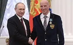 ![]() The coach of the Russian national cross-country skiing team, Reto Burgermeister, was awarded the Order of Friendship by Vladimir Putin in March, 2014 | |