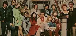 ![]() Original cast of Return to Peyton Place Front row: Ben Andrews, Ron Russell, Pat Morrow, Larry Casey, Julie Parrish, Warren Stevens, Kathy Glass, John Levin, Bettye Ackerman, Evelyn Scott, Guy Stockwell Back row: Stacy Harris, Frank Ferguson, Joe Gallison, Mary K. Wells | |