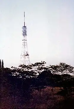 Occupying a position high in the hills above the Salisbury racecourse, the Pockets Hill television station was built just a few metres away from its original 'Alexandra Palace-style' transmitter mast. This was later replaced by a much taller, guyed structure. The HQ of the Rhodesian Broadcast Corporation occupied the nextdoor building.