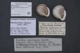 - ^ "WMSD - Worldwide mollusc species DB - Rhynchotrochus rollsianus". www.bagniliggia.it. Retrieved 2022-01-27.