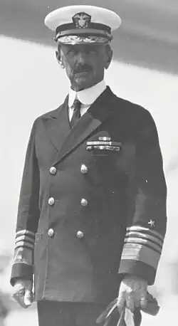 He served aboard the torpedo boat Foote during the Spanish–American War,[4] followed by duty aboard the torpedo boat Gwin and three years with the gunboat Nashville. In 1903 he returned to the Naval Academy as an instructor in the Department of English and Law, concluding his tour in 1905 by commanding the protected cruiser Atlanta during midshipman training missions. He was navigator of the armored cruiser Colorado from 1905 to 1907 and executive officer from 1907 to 1908.[2] From 1908 to 1910, he was in charge of the Naval Proving Ground at Indian Head, Maryland.[10]