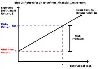 A risk premium is a measure of excess return that is required by an individual to compensate being subjected to an increased level of risk.[1] It is used widely in finance and economics, the general definition being the expected risky return less the risk-free return, as demonstrated by the formula below.[2]