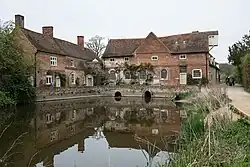 Boxted Mill house is a two-storey building with attics,[65] but the mill building was demolished in the 1920s. At Langham, there was a corn mill and a fulling mill in 1086, but the fulling mill was demolished around 1510. In 1752, it was recorded that the remaining mill could fulfil either function. The building was reconstructed in brick around 1779, and ceased operating in 1912. It was later demolished to make way for a pumping station.[50] Flatford Mill is well known because of the paintings of John Constable. It carries a date stone showing 1733, but may include some earlier material. The structure includes a granary to the rear, and a 19th-century wing adjoining the granary. Much of it is constructed of red brick, with some weatherboarding. It was owned and operated by the Constable family from the mid-18th century until 1901, when milling ceased, due to competition from more efficient mills. After a period of decay it was restored and given to the National Trust, and is now leased to the Field Studies Council, who operate a field studies centre there. It is Grade I listed, because of its association with Constable.[66][50] In 2012, an Archimedes screw turbine was installed at the mill. Rated at 11 kW, it was expected to provide around a third of the energy used by the field studies centre.[67] Work has since been carried out to improve the efficiency of the turbine, and to install a fish pass.[68] The lowest mill on the river was Brantham or Green's Mill, which was recorded in 1086. It may have been a tide mill at that time, and was definitely so later on. It was rebuilt in 1778, and subsequently became a steam-powered roller mill, producing cereals. It ceased to operate in the 1930s, although it was used as a pepper mill during the Second World War, but was damaged during the conflict. The remains were destroyed by fire in 1965.[50]