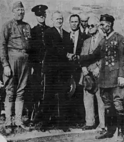 ![]() Von Schlick (left) with California governor C. C. Young and five other Medal of Honor recipients in 1930 | |