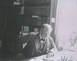 ![]() Robert Tigerstedt at his library table, Helsinki, Finland. | |