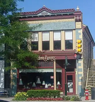 - Rollin Sprague Building – The oldest commercial building in the downtown is the Rollin Sprague building, built in 1849 of coursed cobblestone. Since 1930 it has housed "The Home Bakery".
