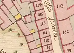 The old No. 117 was listed in the new cadastre of 1806 as No. 116, owned by Jacob Borgvardt. The old No. 116 was listed in the new cadastre of 1806 as No. 117 and was also owned by Jacob Borgwardt. The two properties were formally as No. 116 & 117.[1]