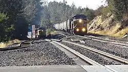 The Roseville Subdivision is a railway line in California and Nevada owned by the Union Pacific Railroad, as part of the Overland Route. It runs from Roseville, California over the Sierra Nevada to Reno, Nevada.[1] The route originated as the initial Central Pacific Railroad segment of the first transcontinental railroad, but has since been upgraded, double tracked, or realigned in some locations. The line reaches an elevation of 6,887 feet (2,099 m) above sea level at Norden, California.[2]